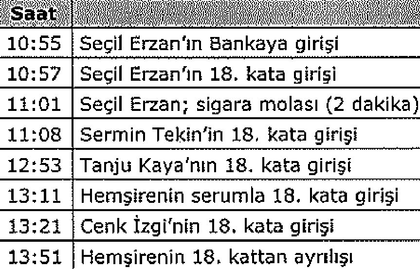Bilgi notunda Seçil Erzan’ın bankaya bir ifade de verdiği anlatılıyor. Yani savcılıktan önce Seçil Erzan’ı banka sorgulamış. Bilgi notunda Seçil Erzan’ın bankaya bir yakınının kullandığı otomobille geldiğini anlatıyor ve neredeyse dakika dakika Erzan’ın bulunduğu yer ile bankanın 18. katındaki o toplantı odasına giren çıkanların listesini de içeriyor. Yani banka bu bilgi notunu savcılıkta yürütülen ‘kişiyi hürriyetinden yoksun kılma’ soruşturmasına karşı bir çeşit savunma olarak da yazılmış.