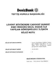 Böyle bir soruşturmanın başlama ihtimalini gözeten Denizbank Teftiş Kurulu 26 Mayıs tarihinde bir bilgi notu hazırlayarak savcılığa göndermiş. Bilgi notunu kendisi de soruşturulan kişiler arasında bulunan bankanın Teftiş Kurulu Grup Müdürü Cenk İzgi yazmış.