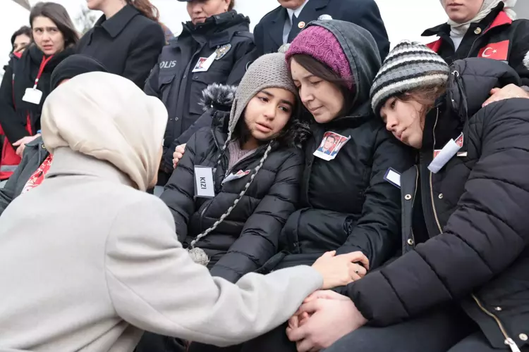 Şehit Öztürk’ün kızı Ülkü Nehir babasının tabutunun konduğu cenaze arabasının arkasından koştu, gözyaşı döktü. Şehit Gülen’in sözlüsü Merve Özden ise tabut cenaze arabasına konduğu sırada ‘Götürmesinler, ne olur götürmesinler’ diyerek feryat etti. Şehit Öztürk’ün eşi Mehtap ile kızları Ülkü Nehir ve Elif Naz, törenin ardından el sallayarak şehide veda etti. Şehit pilotlar Karşıyaka Polis Şehitliği’nde toprağa verildi.