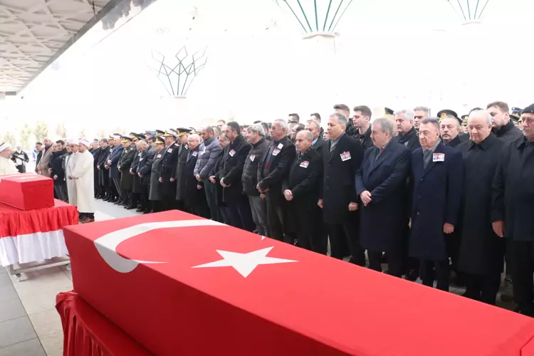 Sözleşmeli Pilot Levent Öztürk’ün eşi Mehtap, kızları Ülkü Nehir (17) ve Elif Naz Öztürk (11) de ayakta durmakta zorlanırken aileyi yakınları ile Aile ve Sosyal Hizmetler Bakanı Mahinur Özdemir Göktaş teselli etmeye çalıştı. Öğle namazından sonra kılınan cenaze namazına şehitlerin aileleri ve yakınları ile birlikte İçişleri Bakanı Ali Yerlikaya, Milli Savuma Bakanı Yaşar Güler, Aile ve Sosyal Hizmetler Bakanı Mahinur Özdemir Göktaş, MHP Genel Başkanı Devlet Bahçeli, BBP Genel Başkanı Mustafa Destici, Genelkurmay Başkanı Orgeneral Metin Gürak, Deniz Kuvvetleri Komutanı Oramiral Ercüment Tatlıoğlu, Jandarma Genel Komutanı Orgeneral Arif Çetin, İçişleri Bakan Yardımcısı Mehmet Aktaş, Ankara Valisi Vasip Şahin ve İl Emniyet Müdürü Engin Dinç katıldı. Şehitlerin namazını Diyanet İşleri Başkanı Ali Erbaş kıldırdı. Namazın ardından şehitlerin tabutları, meslektaşlarının omuzlarında cenaze aracına kondu.