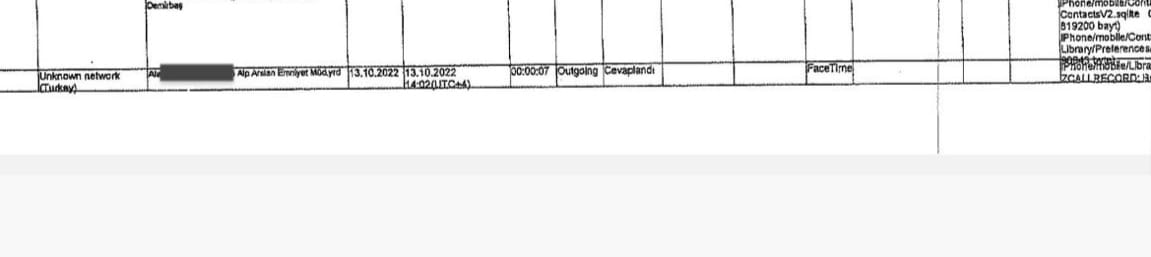 Tolgahan Demirbaş rehberinde Emniyet Müdür Yardımcısı Alp Aslan olarak kayıtlı kişiyi 13 Ekim 2022 tarihinde Facetime üzerinden arayıp 7 saniyelik bir görüşme gerçekleştiriyor.