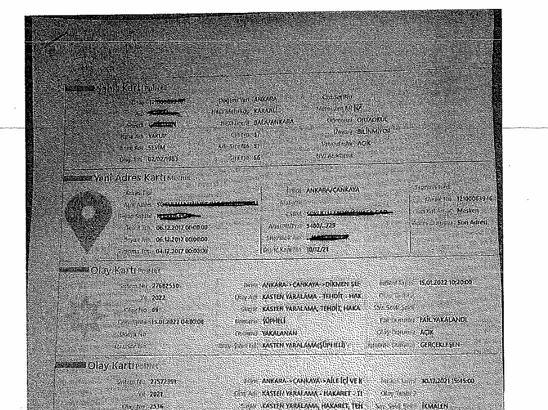 Demirbaş’ın bir şahısla ilgili istediği bilgi sonrası Aykal’ın gönderdiği olay kartı.