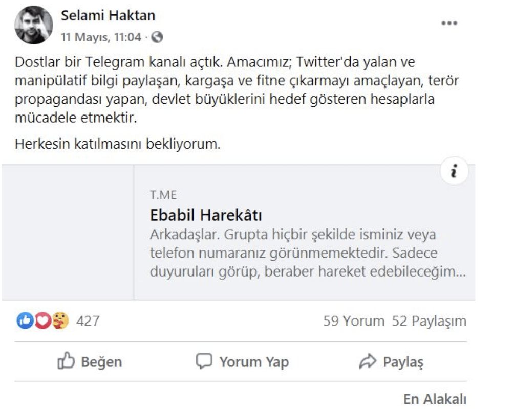 Bu şikayetlerin arkasında, Ebabil Harekatı vardı. Henüz yeni kurulan bu yapılanın Twitter hesapları Ekim 2019’da, Facebook sayfaları Mayıs 2020’de açılmıştı.