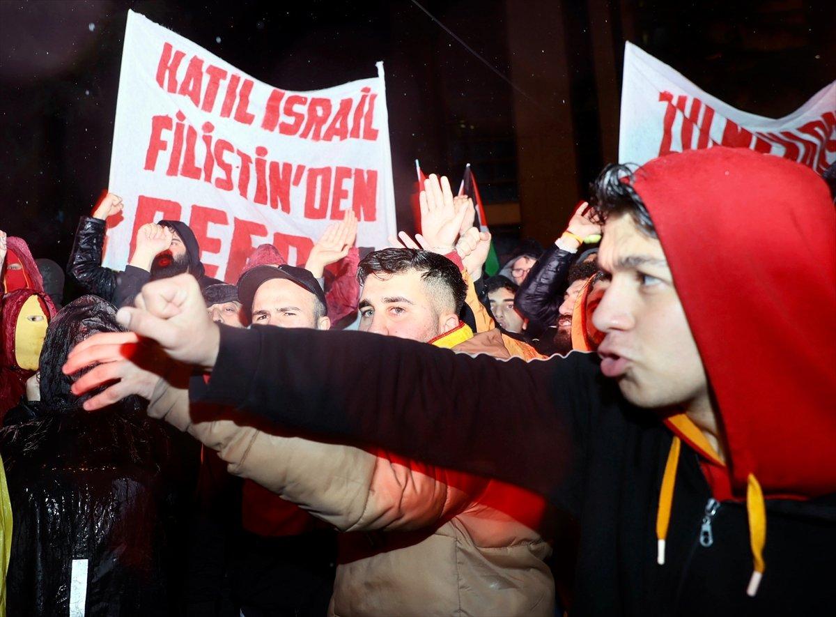 Yağmur altında İsrail Konsolosluğu önünde buluşan gruplar sloganlar ve meşalelerle Gazze'ye destek gösterisi yaptı. İsrail Konsolosluğu önünde toplanan Galatasaray – Ultraslan, Fenerbahçe – Genç Fenerbahçeliler, Beşiktaş – Çarşı, Trabzonspor – Gurbetçi Gençler, Bursaspor – Texas, Ankaragücü – Gece Kondu, Adana Demirspor – Şimşekler, Sakaryaspor – Tatangalar ve Kocaelispor – Hodri Meydan grupları sloganlar atarak İsrail’e tepki gösterdi.