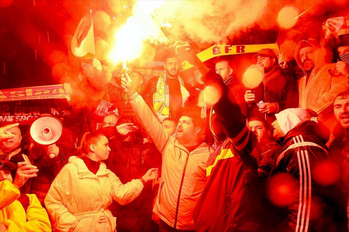 Konuşmanın ardından Filistin’de hayatını kaybedenler için dua edildi ve taraftar grupları sloganlarla alandan ayrıldı.
