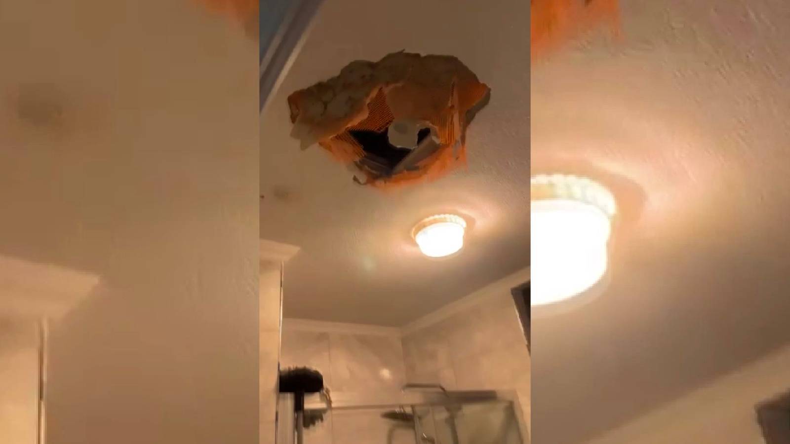 “Apartmanımızın WhatsApp grubu var bize oradan haber geldi, saat gece 11 gibi. Biz de olayın tam detayını öğrenemedik çünkü mağdur kiracılarım hastanedeydiler. Biz de netleştirmek ve olayın ne olduğunu anlamak için ailecek çıktık geldik buraya. Geldiğimizde kiracımın annesinin yaralı olduğunu gördüm. Şu anda iyiler ama psikolojik olarak yıkıldılar tabi. Banyonun tavanında patlak vardı, onun haricinde herhangi bir yerde bir şey yoktu. Oradan girmiş.