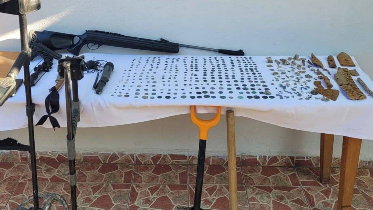 Aramada tarihi eser niteliğinde olduğu değerlendirilen 432 sikke ve obje, 1 kilo 348 gram sentetik , 488 gram esrar, 26 kök Hint keneviri, 3 dedektör, ruhsatsız tabanca, ruhsatsız tüfek ve hassas terazi ele geçirildi.