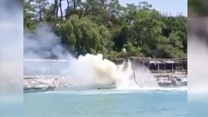 İhbar üzerine bölgeye polis ve jandarma ekipleri sevk edilirken su sporları tesisinde çalışanlar jet ski ve flyboard ile tekneye su püskürterek yangına ilk müdahalede bulundu.