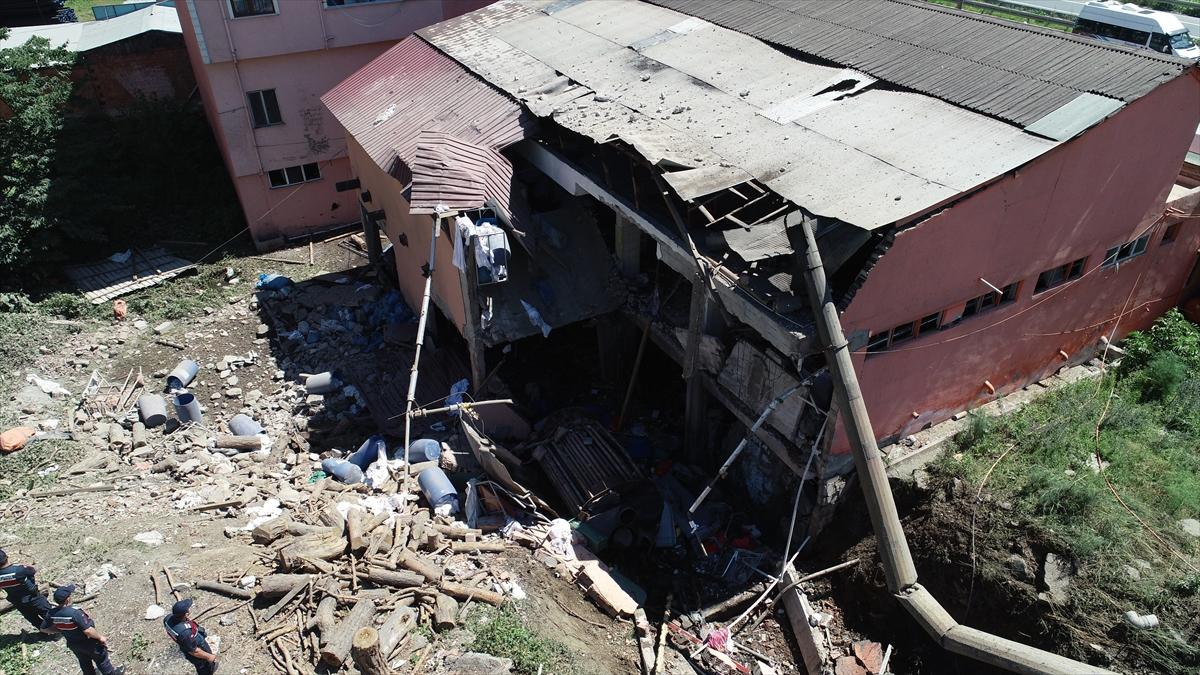 Patlamanın yaşandığı binada hasar meydana geldi.