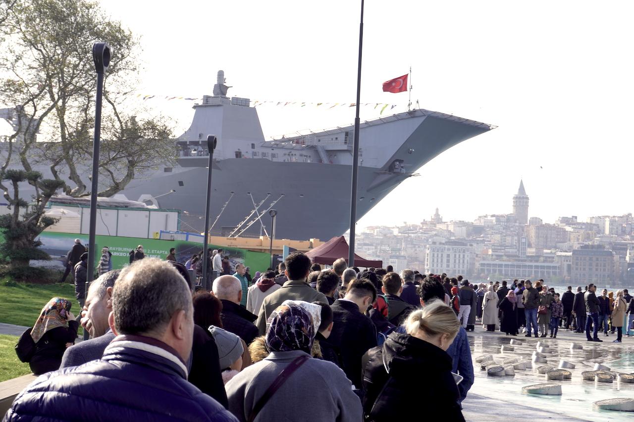 Ama bu yeni askeri planlar geminin inşa sürecinde değiştiği için gemi önceden tamamlanmış oldu ve kısa süre önce donanmaya teslim edildi. Bu teslimden hemen sonra da İstanbul Sarayburnu’na getirilen gemi bir ‘ulusal gurur vesilesi’ olarak halka açıldı. İstanbuluların ve hatta şehir dışından gemiyi gezmeye gelenlerin oluşturduğu uzun kuyruklar, halkın gemiden ne kadar etkilendiğini ve gurur duyduğunu ortaya koyuyor zaten.