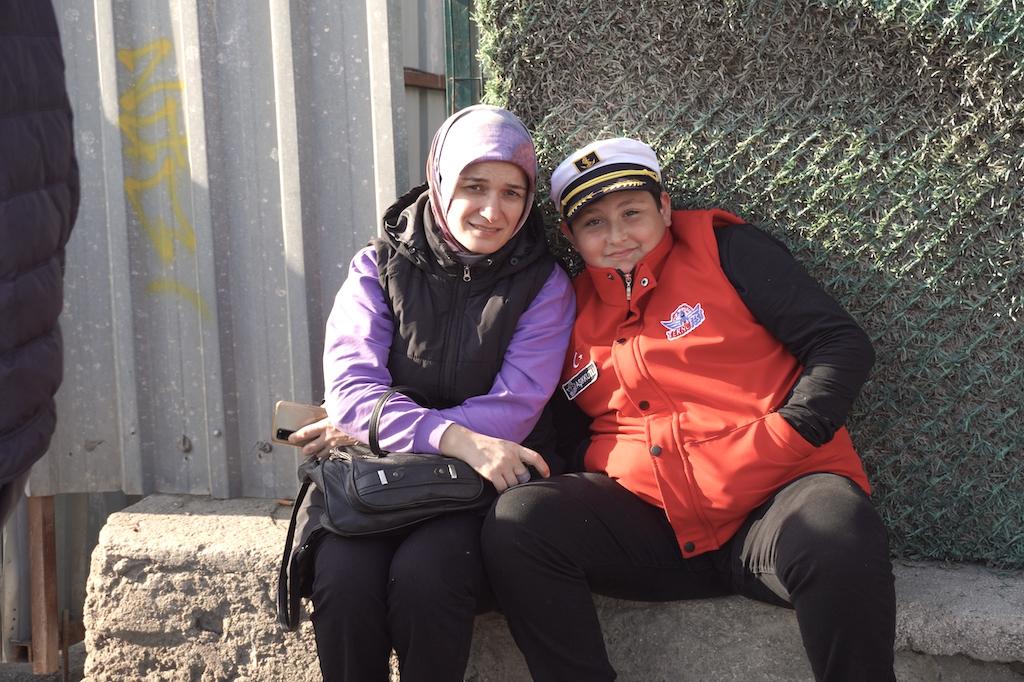 Gemiye ziyaretçi alınmayacağının duyurulmasına rağmen vatandaşlar sıradan ayrılmıyor. Bir süre sonra kalabalık bir grupla beraber yürümeye başlayınca 11 yaşındaki Eyüp’ün annesinin omzunda uyuduğunu görüyoruz.