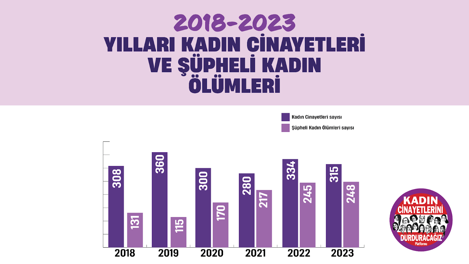 Kadın Cinayetlerini Durduracağız Platformu 2008 yılından itibaren kadın cinayeti verisini kayıt altına alıyor. Platforma göre, kayıtların başladığı son 15 yılda kadın cinayetlerinin azaldığı tek yıl İstanbul Sözleşmesi’ne imzanın atıldığı 2011 yılı. Platform İstanbul Sözleşmesi hakkında tartışmalar başladığından bu yana kadın cinayetleri ve şüpheli ölümlerde artış yaşandığını belirtiyor. 2023’te de kadın cinayetleri ve şüpheli kadın ölümlerinde büyük bir artış gerçekleşti. Platform, İstanbul Sözleşmesi etkin olarak uygulandığında birçok kadının hayatta kaldığı söylüyor. Rapora göre 2023’te 315 kadın erkekler tarafından öldürüldü. Platform 248 kadın ölümünü de şüpheli bulduğunu açıkladı. Yani intihar veya kaza gibi kayıtlara geçen ama kadın cinayeti olma ihtimali olan ölümler. Raporun detaylarına yakından bakalım.