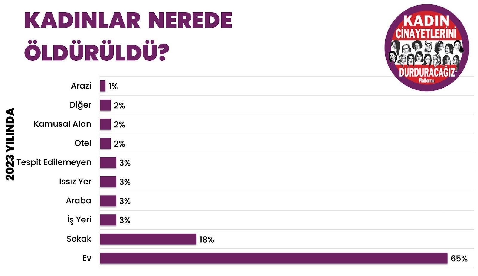 Rapora göre 2023’te kadınlar en çok evde öldürüldü.