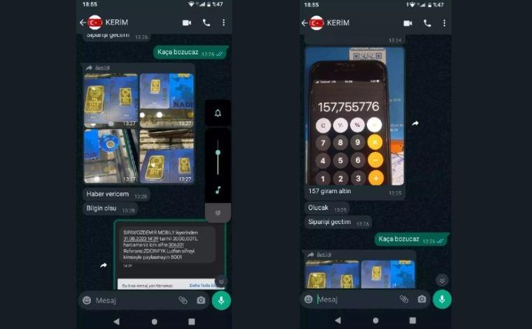 Arkadaşlarına ucuza altın vaadinde bulunduğu mesajların ekran görüntüsü