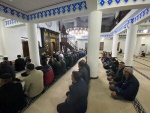 Kent merkezindeki Cedidiye Camisi’nde akşam ezanının ardından camiye gelen Müslümanlar vaaz ve Kur’an tilavetini dinledi.