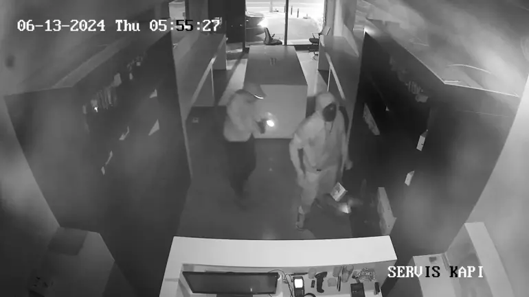 Bu sırada biri alarmı kırarak iptal etti. Hızlıca değerleri toplam 2 milyon lirayı bulan dron, kamera ve çeşitli teknolojik ürünleri çalarak otomobile doldurdular.