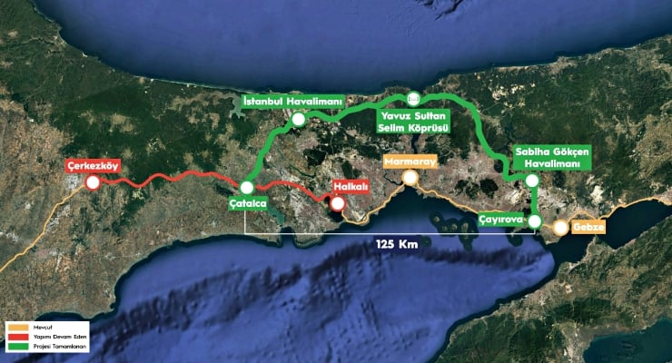 125 kilometrelik demiryolu projesiyle İstanbul’un Avrupa yakasındaki Halkalı ile Asya yakasındaki Gebze sanayi bölgesi arasında yolcu ve yük taşınacak. Hat Yavuz Sultan Selam Köprüsü üstünden İstanbul Boğazı’nı geçecek.