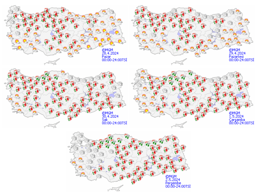 MGM’nin 28 Nisan-2 Mayıs hava durumu tahmini.