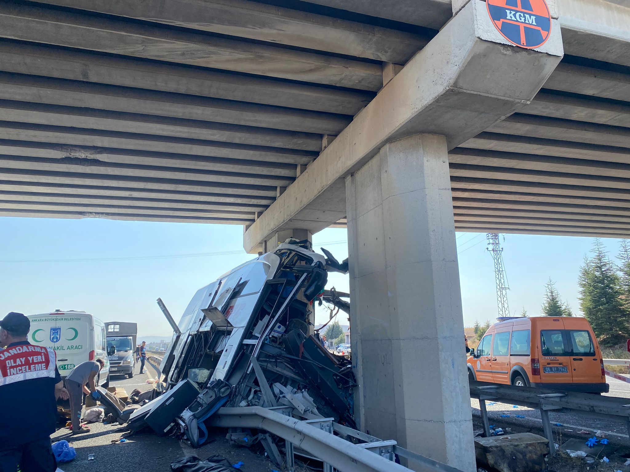 Ankara Valisi Vasip Şahin, ilk belirlemelere göre kazada 9 kişinin hayatını kaybettiğini, 26 kişinin yaralandığını bildirdi. Vali Şahin, kazanın nedeniyle ilgili incelemenin devam ettiğini, ancak şoförün uyuma ihtimalinin değerlendirildiğini söyledi. Jandarma ekipleri, yaralıların hastaneye sevk edilmesi ardından kaza yerinde inceleme yaptı. Yolda fren izi olup olup olmadığına bakıldı. İlk tespitlerde fren izi olmadığı belirlendi. Öte yandan ölenlerin arasında otobüsün şoförü de var.