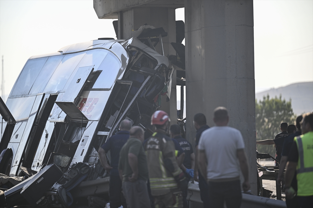 Ankara'da yolcu otobüsü üst geçidin ayağına çarptı. Kazada araç hurdaya dönerken 9 yolcu öldü, 26 kişi de yaralandı. İlk incelemelerde yolda fren izine rastlanmadığı için kazanın şoförün uyumasından kaynaklandığı düşünülüyor.