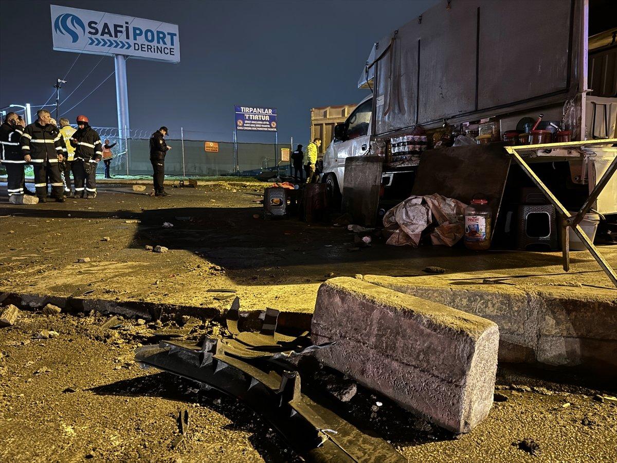 Kocaeli'nin Derince İlçesi'nde köfte ekmek satışı yapılan kamyonetin yanında yemek yiyenlerin arasına TIR'ın dalması sonucu 1'i ağır 5 kişi yaralandı. TIR sürücüsü kaçtı.