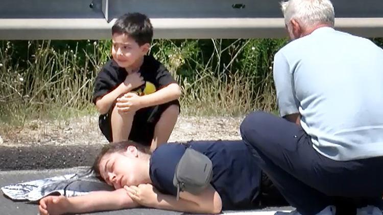 Annesiyle birlikte otomobilde olan küçük çocuk ise ambulans gelene kadar annesinin yanında ağlayarak bekledi. İhbar üzerine olay yerine gelen jandarma ekipleri havalimanı istikametini trafiğe kapattı. Sağlık ekipleri ilk müdahalesini olay yerinde yaptıkları sürücüyü hastaneye kaldırdı. Jandarma, kazayla ilgili çalışma başlattı.