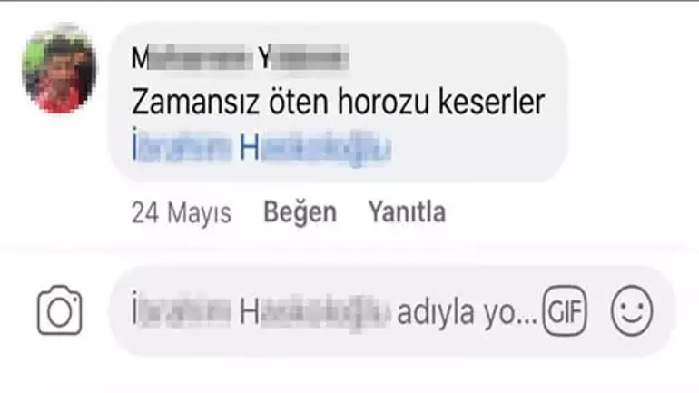 ‘Zamansız öten horozu keserler’ diyerek ve müvekkilimizi de etiketlemek suretiyle müvekkilimize matuf bir şekilde bu yorumu yaptılar. Biz bunu müvekkilimize yönelik vücut bütünlüğüne tehdit olarak algıladık ve bunun üzerine savcılığa suç duyurusunda bulunduk. Mahkeme de ‘Zamansız öten horozu keserler’ atasözünü müvekkile yönelik bir tehdit olarak değerlendirdi.