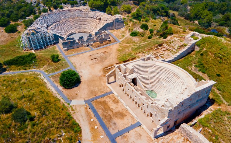 Dünyanın en yüksek rakımlı antik tiyatrolarından birine evsahipliği yapan Sagalassos’taki bu tarihi yapının kapsitesi 10 bindi. Antik Çağ’da bu tip yapıların genelde kent nüfusunun yüzde 10’una ağırlayabilecek şekilde tasarlandığını düşünecek olursak Sagalassos’un en parlak döneminde 100 bin kişilik bir nüfusu barındırdığını söyleyebiliriz. Her biri estetik harikası çeşmeleriyle tanınan antik kentte Antoninler Çeşmesi’nin ayrı bir yeri var. Bölgede yapılan DNA çalışmaları kentte Roma döneminde yaşayan insanların nispeten daha sağlıksız olduğu sonucunu ortaya çıkarıdı. Bu da antik kentin Roma yönetiminden önce daha müreffeh olabileceği sonucunu ortaya çıkarıyor.