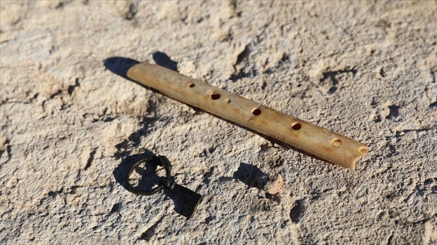 Diyarbakır’ın Çınar ilçesinde, Roma İmparatorluğu döneminde “askeri yerleşim” olarak kullanılan 3 bin yıllık Zerzevan Kalesi’ndeki kazılarda, 1600 yıllık kemik flüt ve bronz anahtarlı yüzük bulundu.