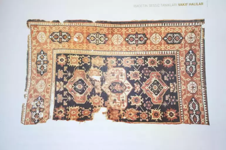 Konuya ilişkin bakanlıktan yapılan açıklamaya göre, Osmanlı halıcılığının nadide örneklerinden biri olarak yaklaşık 5 asır önce Uşak’ta dokunan halı, uzun yıllar süren bir kayboluşun ardından yurt dışında bir koleksiyonda ortaya çıktı. Bu tarihi dokuma şimdi yeniden ait olduğu topraklarda, Ankara Vakıf Eserleri Müzesi’nde sergileniyor. Desenleri, renkleri ve işçiliğiyle dikkat çeken halı, stilistik özellikleriyle Uşak’ta dokunmuş olduğunu ortaya koyuyor. Her santimetresine ince ince işlenen Türk düğümleri, halıya Osmanlı zanaatının zarafetini kazandırıyor. Uzmanlara göre, küçük bir karenin içine bile 1000’in üzerinde düğüm sığdırılmış. Zemininde lacivert, desenlerde pastel kırmızı, sarı ve kirli beyaz tonlar kullanılan halı, hatayi ve stilize natüralist çiçeklerle bezeli iri madalyonlar ile dikkat çekici bir kompozisyon oluşturuyor.