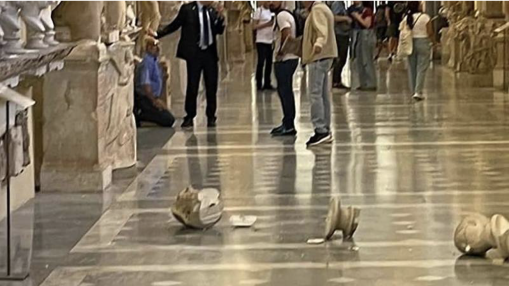 Vatikan’da ABD’li bir turist, Papa Francesco ile görüşme talebi reddedildikten sonra iki Antik Roma dönemine ait heykeli kırdığı için gözaltına alındı. Il Mesaggero’nun haberine göre 50’li yaşlarında olduğu belirtilen ancak ismi paylaşılmayan turist, Papa’yla görüşemeyeceği kendisine bildirilince kendisini Chiaramonti Müzesi’ndeki bir heykele doğru bıraktı. Heykel, kaidesinden düşerek kırıldı. ABD’li turistin müze güvenliğinden kaçmaya çalışırken de bir büstü devirerek kırdığı bildirildi. Müze çalışanlarının etkisiz hale getirdiği turist, kısa süre sonra Vatikan polisi tarafından gözaltına alındı. CNN’e konuşan müze sözcüsü, heykellerin zarar gördüğünü ancak tamir edilmeyecek durumda olmadıklarını ifade etti.