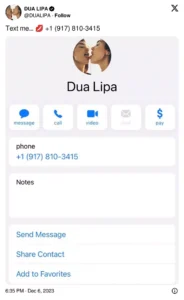 Geçen ay yeni albümünün habercisi ‘Houdini’ adlı teklisini yayınlayan ve büyük beğeni toplayan Dua Lipa telefon numarasını paylaşıp tüm dünyanın ilgi odağı olurken işin aslı bir süre sonra anlaşıldı. Whatsapp uygulamasında aktif hale gelen yeni bir özelliği kullanmaya başlayan müzisyen telefon numarasını da bu yüzden paylaşmıştı.