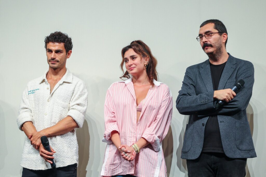 ‘Hatırladığım Ağaçlar’ filminin oyuncuları Erdem Kaynarca, Hande Doğandemir ve yönetmen Erhan Tuncer.