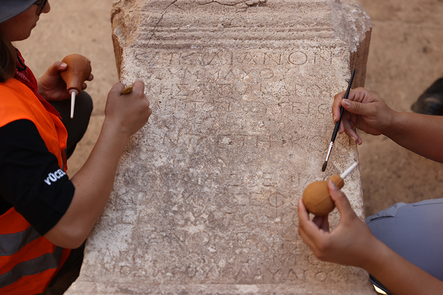 Ortaya çıkarılan yazıtın 120 santimetre yüksekliğinde ve 50 santimetre genişliğinde olduğunu söyleyen Tekocak “Yazıt bizi heyecanlandırdı. Sporculara ait yazıtların başka kentlerde bulunduğunu biliyoruz ama bir sunak ya da heykel kaidesi diyebileceğimiz arkeolojik materyalin üzerinde 13 satırdan oluşan sağlam bir yazıtı ilk defa buluyoruz” dedi.