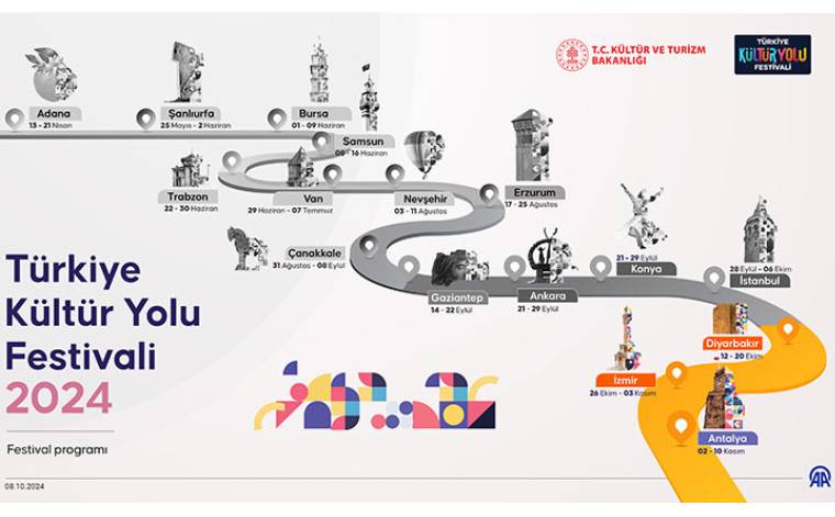 Yaklaşık üç yıl önce Beyoğlu Kültür Yolu adıyla başlayan festival dizisi Türkiye Kültür Yolu adıyla bu sene 16 farklı şehirde düzenleniyor. Kültür ve Turizm Bakanlığı’nın gerçekleştirdiği festivalin Ankara ve İstanbul ayakları sona erdi. Festivalin her iki ayağındaki konser ve sergileri bir milyonu aşkın sanatsever ziyaret etti. Şimdi sırada İzmir var.