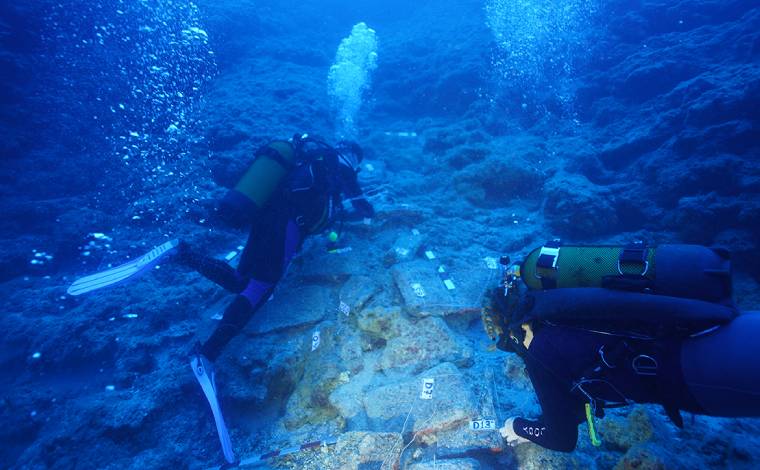 Su altı arkeologların kazıları 50 metre derinlikte devam ediyor.