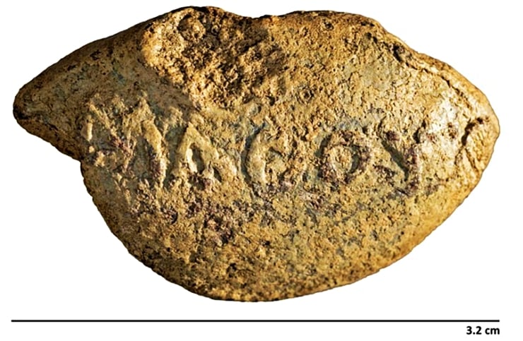 Arkeologlar ilk kez üstünde mesaj yazan ve savaşta kullanılmış bir taş buldu. Taş muhtemelen Roma kalesini kuşatan bir askeri vurmak üzere hazırlandı.