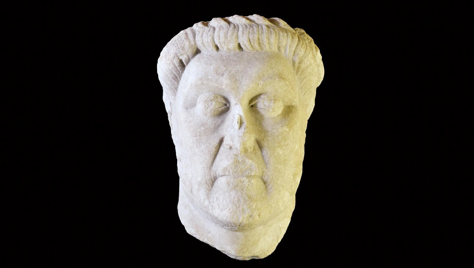 Yüksekliği 25 santimetre olan mermer heykel başı MS 5’inci yüzyılın ikinci yarısına tarihleniyor. Erkek portresi olarak tanımlanan eserde boyun kısmı kırık ve eksik. Heykelde saç ve kaş kıvrımları keskiyle işlenirken göz bebekleri matkap darbeleriyle belirgin hale getirilmiş. Kısa sakallı portrede gözlerin izleyiciye yöneldiği ve yüz hatlarında güçlü ifade unsurları olduğu tespit edildi. Bilimsel verilerle kökeni kesin olarak ortaya konan eser Dışişleri Bakanlığı aracılığıyla yıllar sonra ait olduğu topraklara dönerek İzmir’de sergilenmeye başlandı.