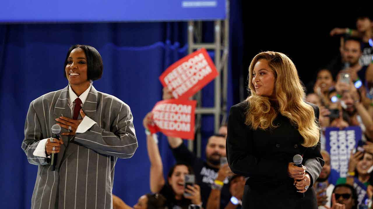 Houston doğumlu Beyoncé Harris’in “kürtaj hakkı” temalı mitingine katılan 30 bin kişinin alkışları arasında sahneye çıktı. Beyoncé’nin yanında eski müzik grubu Destiny’s Child’ın üyelerinden Kelly Rowland da vardı. 2016’da Cleveland’da Hillary Clinton için düzenlenen bir mitingde şarkı söyleyen Beyoncé bu kez şarkı söylemedi, konuşma yaptı, “Bir ünlü olarak burada değilim. Bir politikacı olarak burada değilim. Bir anne olarak buradayım” dedi: