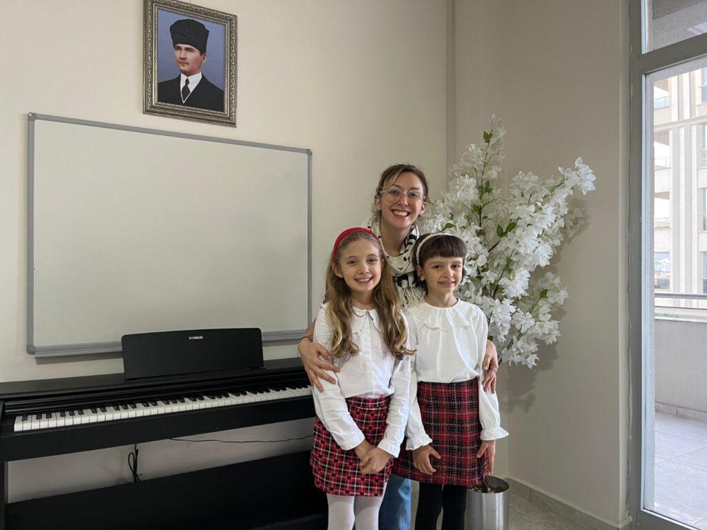 Piyano öğretmeni Hazal Saraçoğlu, Masal Erdan ve Erva Bilge Şengören ile birlikte.