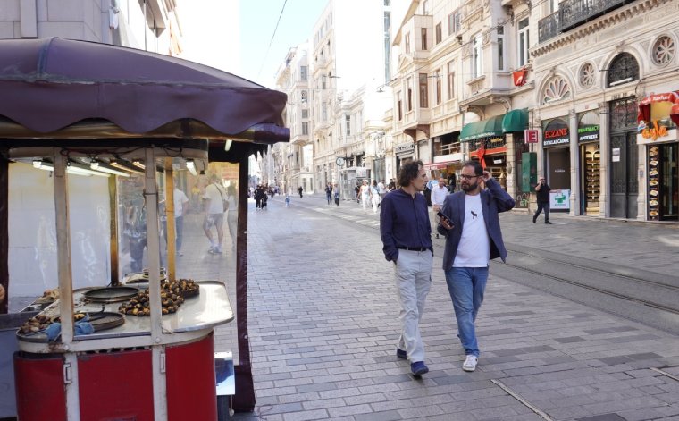 İstiklal Caddesi’nde sohbet ederken şehrin ritmine de tanıklık ettik.