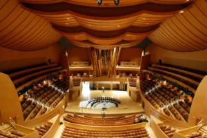 Disney Konser Salonu, Los Angeles’in şehir merkezinin tam göbeğinde.