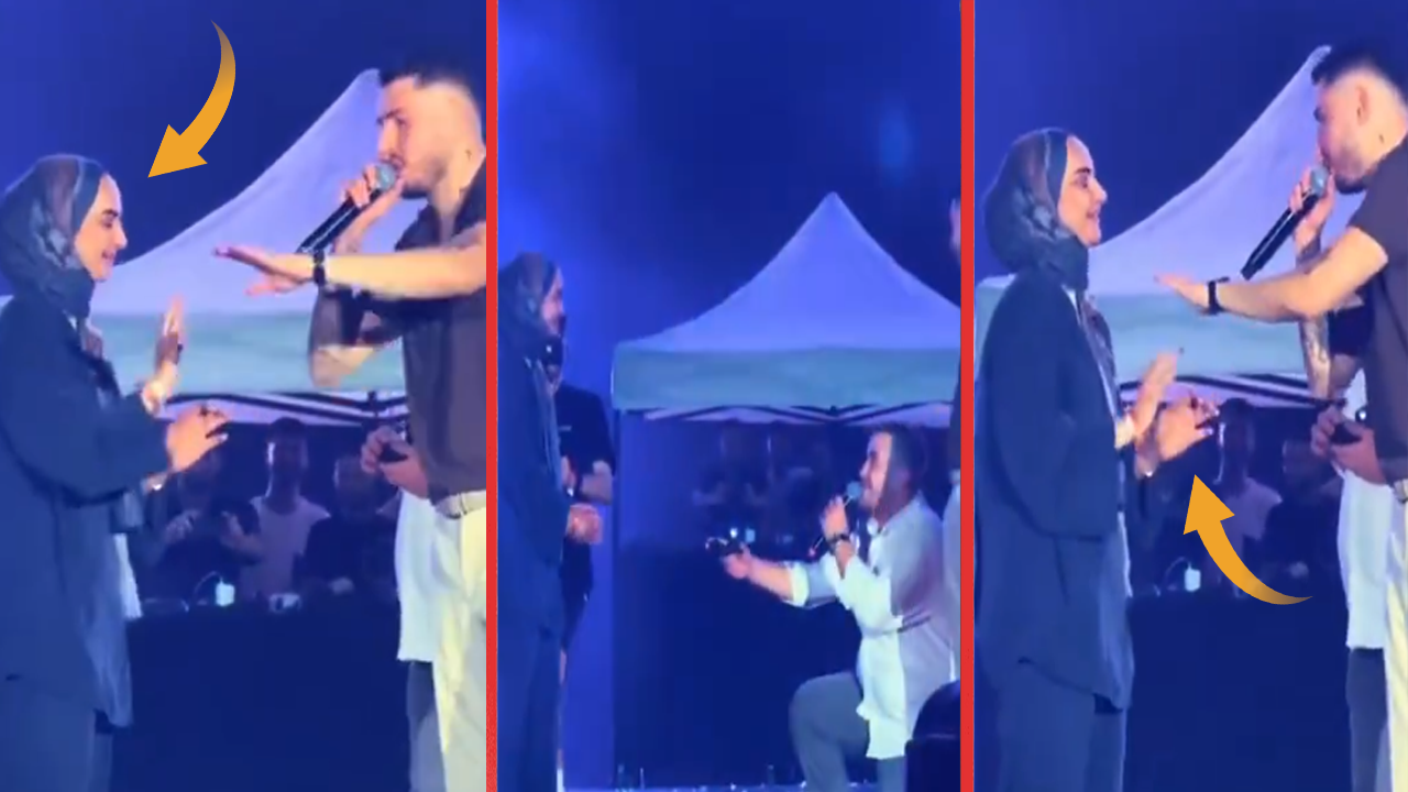 Rapçi BLOK3'ün konserinde ilginç anlar yaşandı. Evlenme teklif edilen kadının parmağına, kabul etmemesine rağmen seyirci desteğiyle zorla yüzük takıldı.