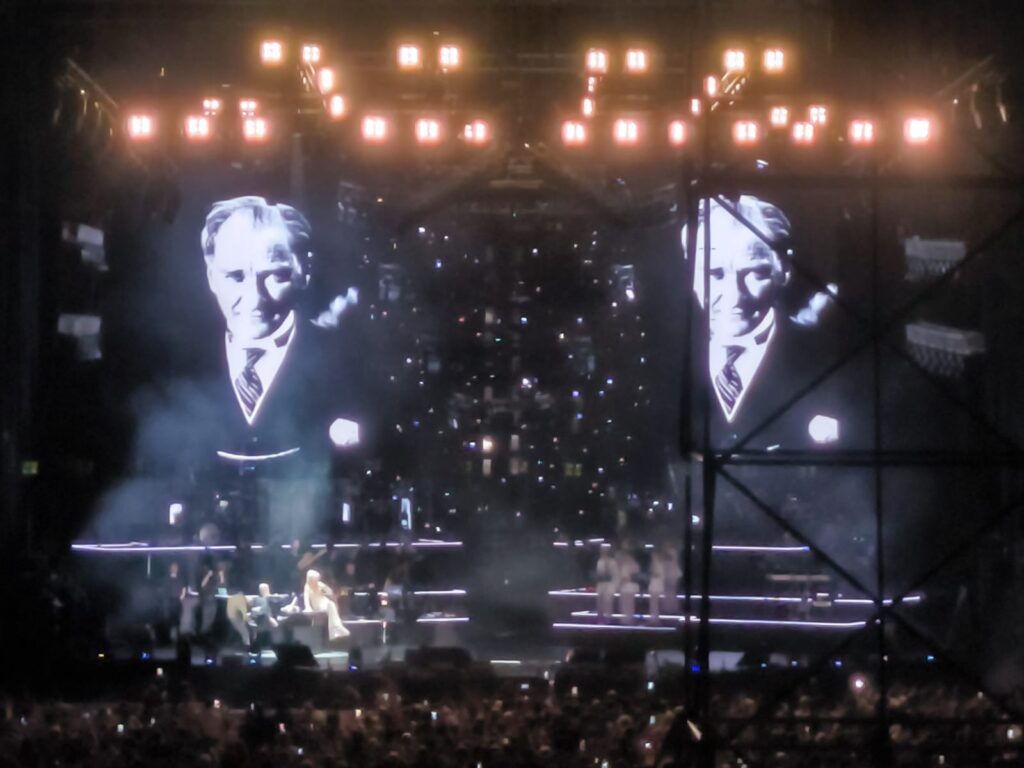 Bu şarkının üzerine ‘Kimler Geldi Kimler Geçti’ söylenirken sahnenin iki tarafından Atatürk’ün fotoğraflarının yer alması büyük alkış aldı. Beşiktaş’tan Atatürk’e selam gönderiliyordu. Ama bu tek selam olmayacaktı. Norm Ender’le birlikte Ajda Pekkan ‘Parla’ şarkısını söylerken de başrolde Atatürk ve Cumhuriyet vardı. Ve ‘Parla’ marşına 40 bin kişi de eşlik ediyordu.