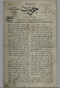 Namık Kemal’in Londra’da yayınladığı, gizlice İstabul’a sokulan Hürriyet gazetesinin ilk nüshası.