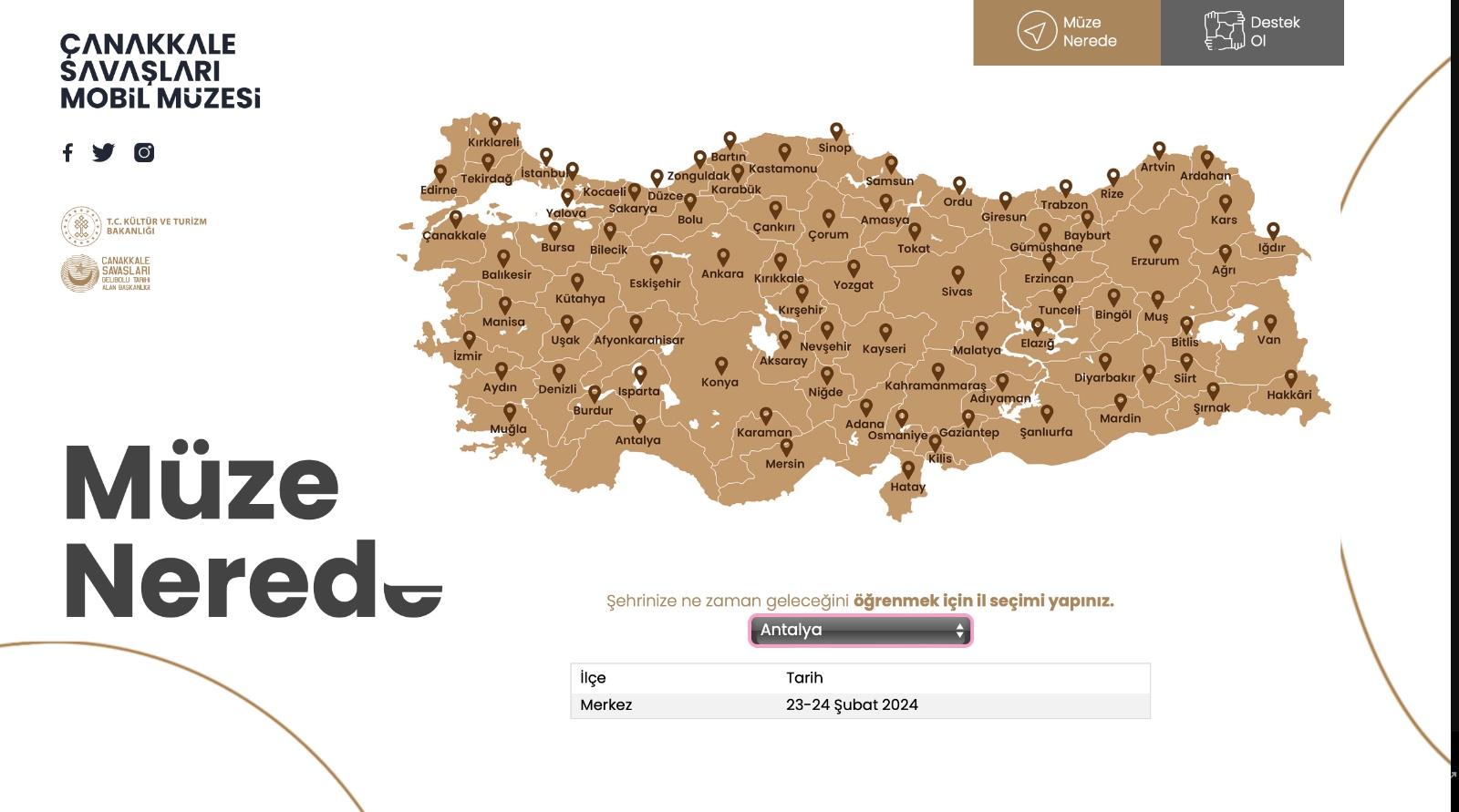 Müzenin internet sitesinde yer alan harita TIR’ın hangi tarihte hangi şehirde olacağını gösteriyor. Müzenin içinde Çanakkale Savaşları’ndan kalma objelerin, resimlerin, fotoğrafların, Çanakkale askeri heykeli ile videoların gösterildiği ekranlar yer alıyor.