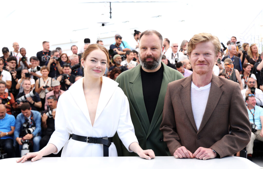 Yorgos Lanthimos (ortada) ‘Kinds of Kindness’ filminin oyuncuları Emma Stone ve Jesse Plemons ile Cannes’da… Fotoğraf: Cannes Film Festivali resmi Twitter hesabı.