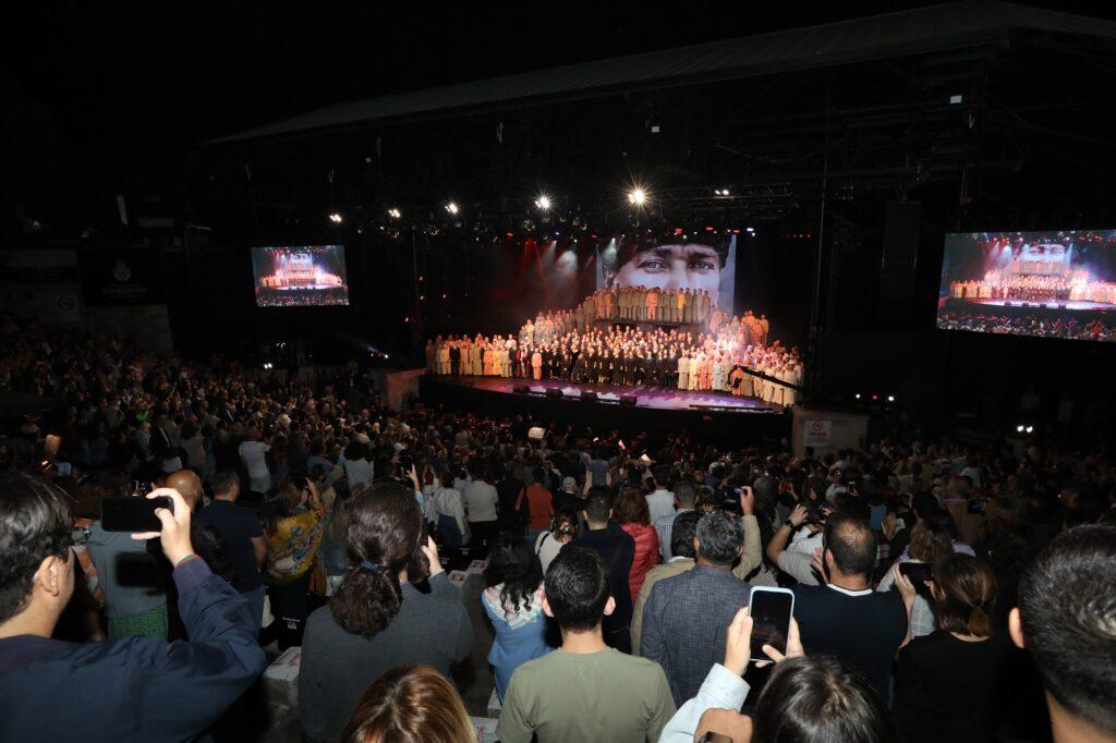 Cumhuriyetin 100. yılına saygı göstergesi olarak hazırlanan ‘Bu Memleket Bizim’, kostümlerinden dekoruna, ışığından metnine, koreografisinden müziklerine, yıllarca hafızalardan silinmeyecek bir görsel şölen olarak kaldı izleyenlerin aklında. İki temsil de uzun süre ayakta alkışlandı.
