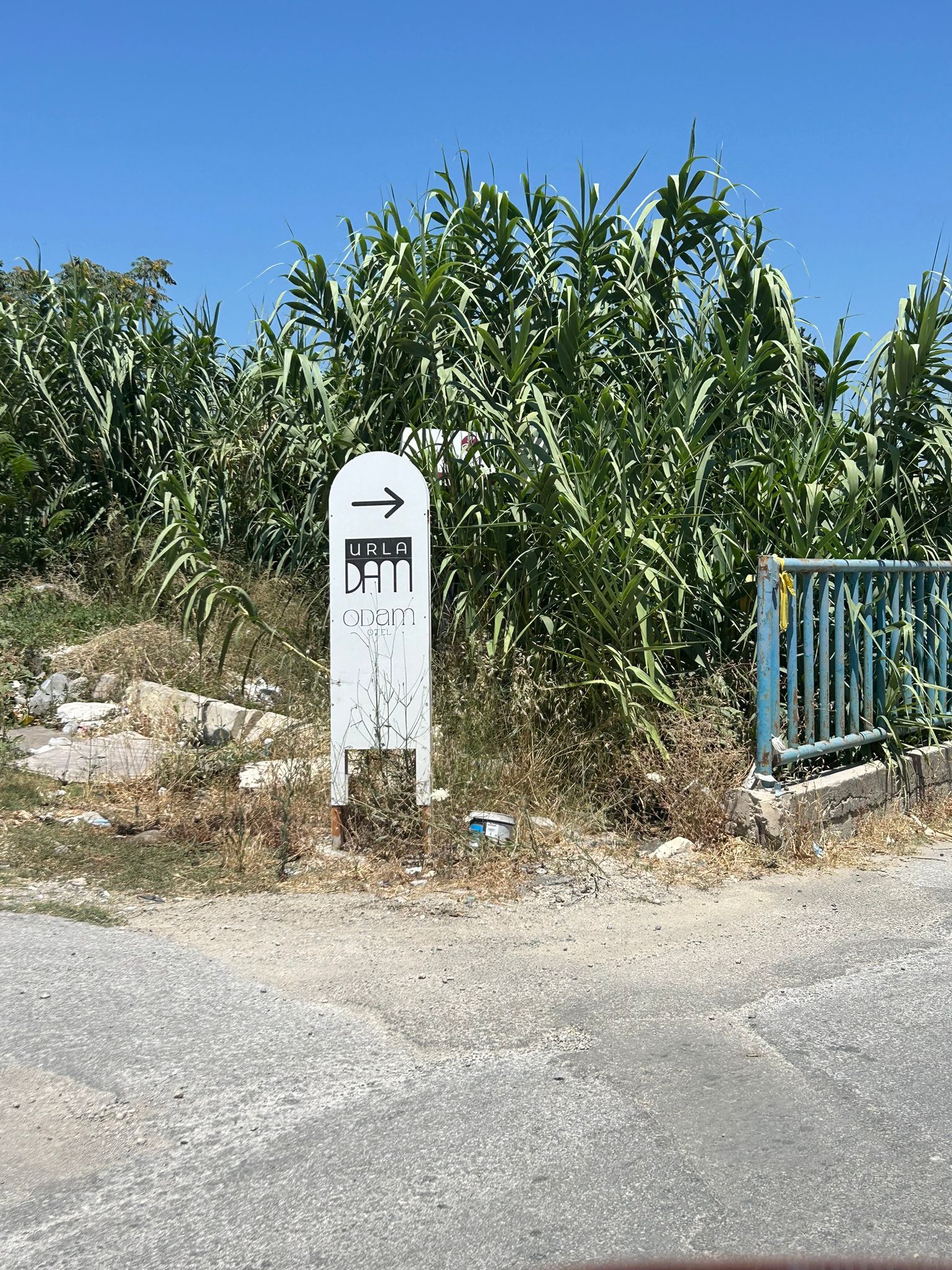 Yol boyunca Urladam’a götüren davetkar tabelalar var.