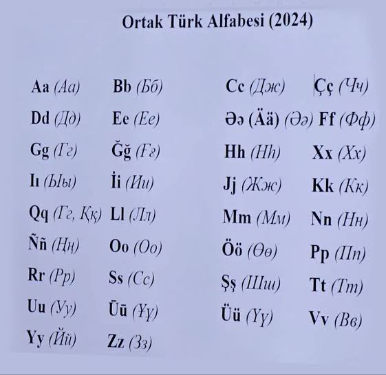 Türk dünyasından akademisyenler daha önce bir araya gelerek Latin harflerine dayalı ortak bir alfabe üzerinde anlaşmıştı. Bu alfabede Türkiye’de kullanılan alfabede kullanılmayan X, Q ve W gibi harfler de var. Ortak alfabe 34 harften oluşuyor.